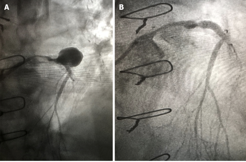 - 冠動脈瘤は限局性の冠動脈の拡張で、一般的に周囲の正常血管径の1.5倍以上あるものと定義される