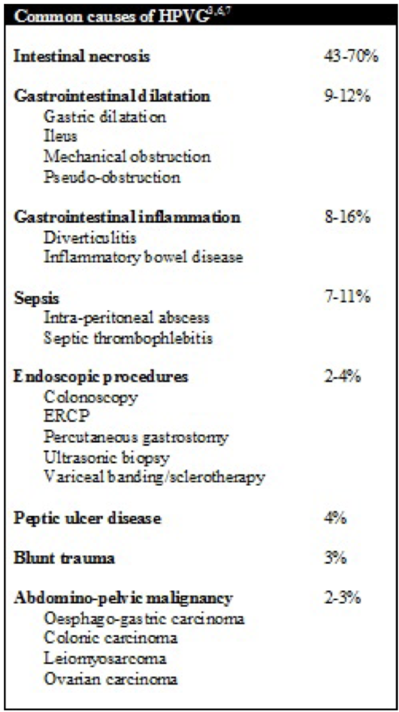 - 腸管気腫がなければ腸管虚血以外が原因かもしれないため門脈気腫がある場合には腸管気腫を探す必要がある